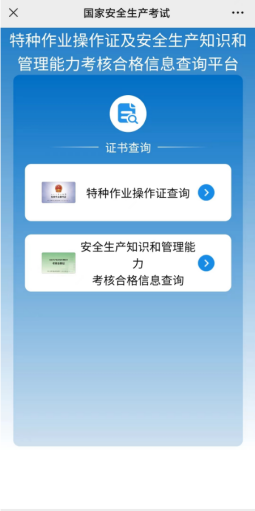 理論考試及實操考試均合格后可登錄應急管理部特種作業(yè)證書查詢官網(https://cx.mem.gov.cn/)或者官方微信公眾號“國家安全生產考試”公眾號,經注冊后,查詢個人特種作業(yè)證書。