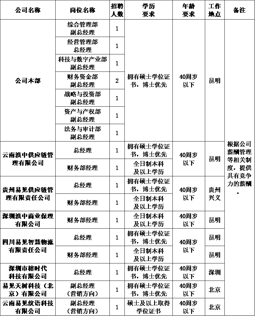 具體崗位職責(zé)及任職條件,詳見附件1《易見供應(yīng)鏈管理股份有限公司2021年公開招聘崗位情況表》。