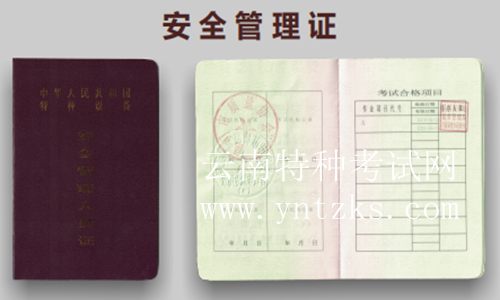 鍋爐、壓力容器、電梯、起重機械、客運索道、場(廠)內(nèi)專用機動車輛的管理人員統(tǒng) 稱為特種設(shè)備安全管理人員,代號:A。證書全國通用,國網(wǎng)查詢。4年一復(fù)審,由昆明 市市場監(jiān)督管理局頒發(fā)。